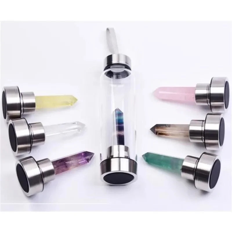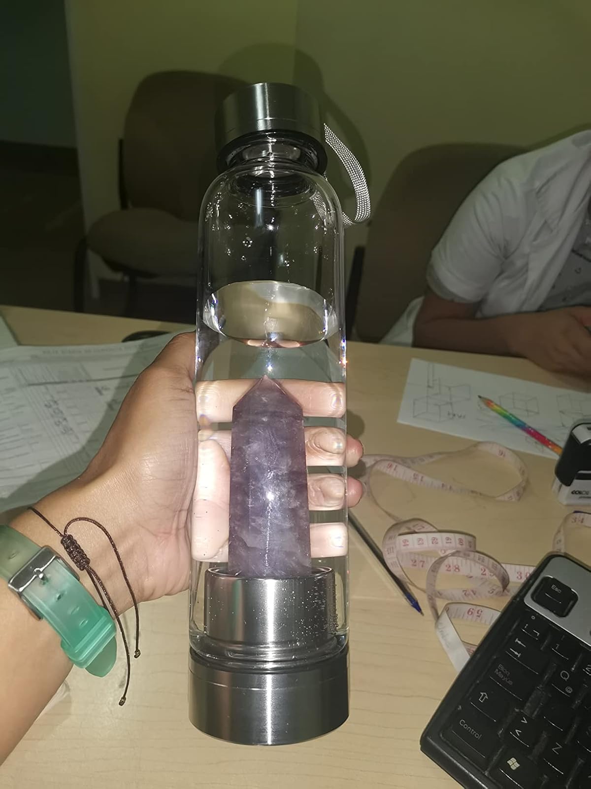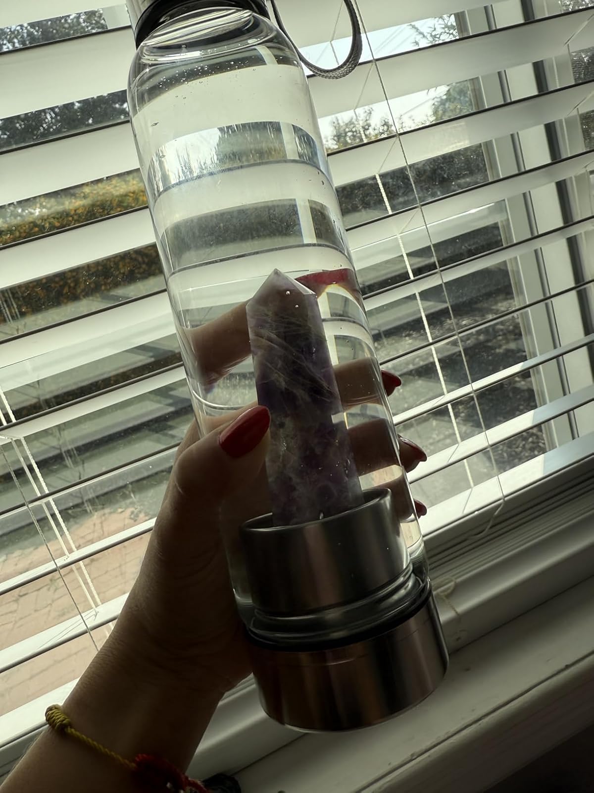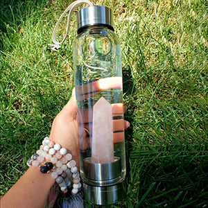 Built with premium glass and stainless steel, the bottle is durable, aesthetically beautiful, and intentionally designed to keep your crystal purified, protected, and energetically potent.