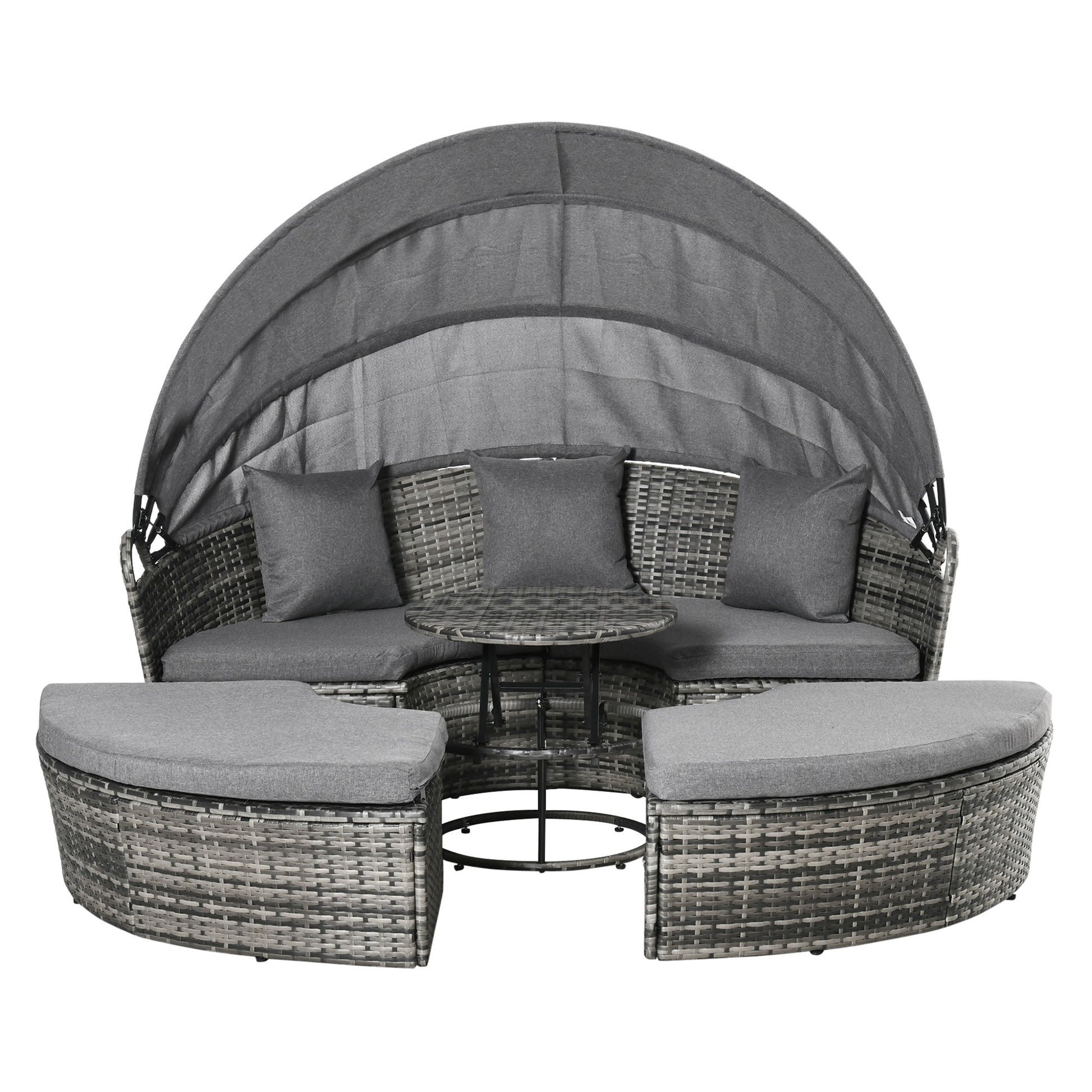 Convertible Rattan Set: The Outsunny 4-Piece Round Outdoor Daybed can transform from a round daybed into a sectional sofa with chairs and a tea table.
